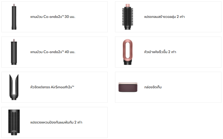 • อุปกรณ์จัดแต่งทรงสุดล้ำอีกระดับ : อุปกรณ์จัดแต่งทรง Dyson Airwrap™ ที่ทรงพลังที่สุดสำหรับการจัดแต่งทรงที่อัดแน่นด้วยกำลัง พร้อมกระแสลม Coanda ที่ทรงพลังยิ่งขึ้น ทรงพลังขึ้น 30% แรงลมเพิ่มขึ้น 2 เท่า ด้วยมอเตอร์ Dyson Hyperdymium™ 2