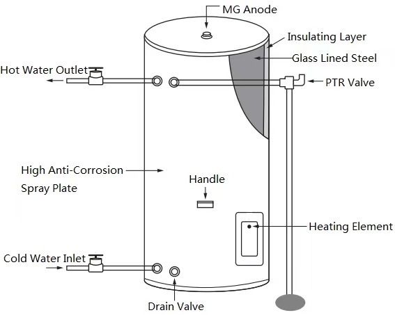 • วัสดุถังด้านใน (Inner Tank Material) : เกรดเหล็ก BTC340R หนาพิเศษเคลือบด้วยสารอินาเมล