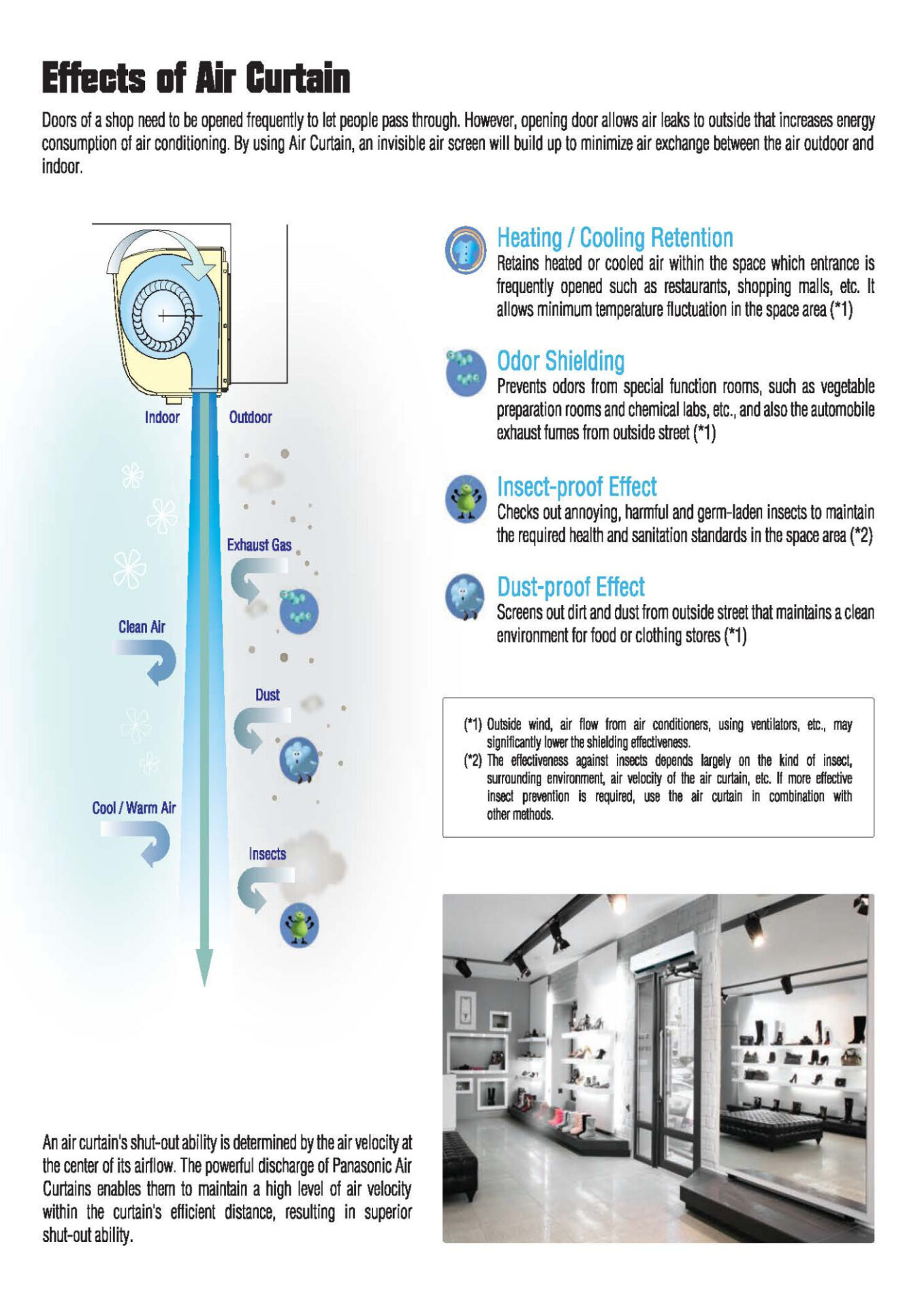 (*2) The effectiveness against insects depends largely on the kind of insect, surrounding environment, air velocity of the air curtain, etc. if more effective insects prevention is required, use the air curtain in combination with other methods