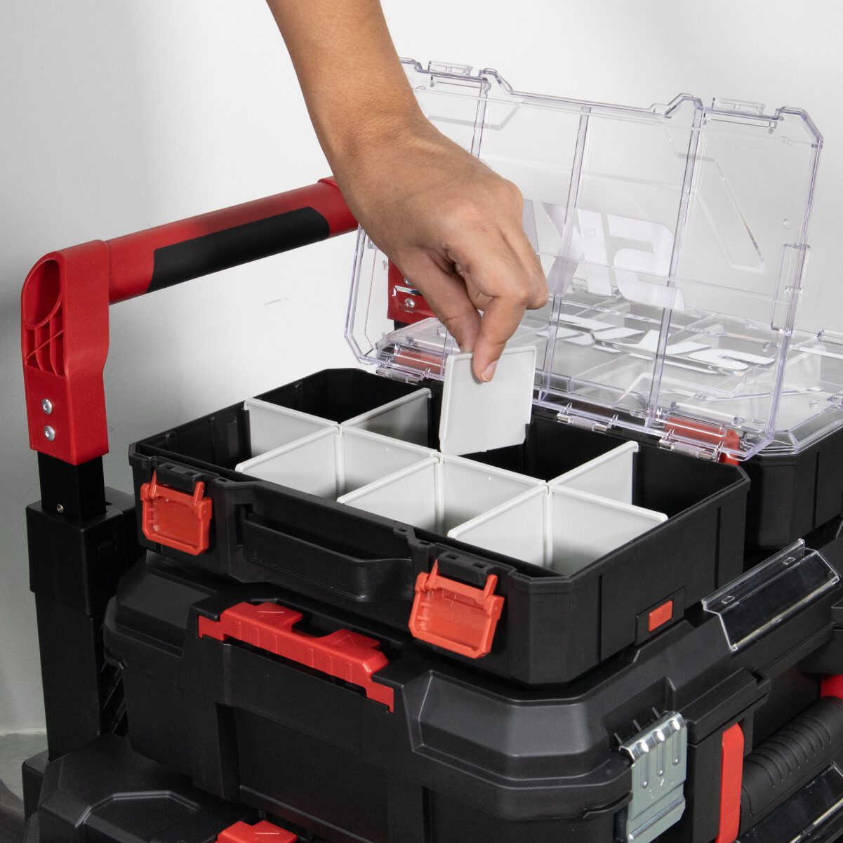 • เชื่อมต่อกล่องจัดเก็บ กล่องเครื่องมือ อุปกรณ์จัดเก็บ และกล่องอุปกรณ์เสริมได้อย่างง่ายดายและปลอดภัย