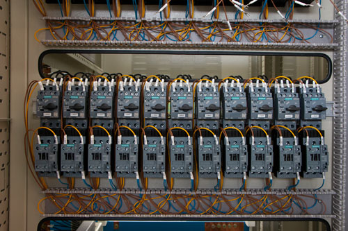 1. เซอร์กิตเบรกเกอร์ (Circuit Breaker) เป็นอุปกรณ์ป้องกันค่ากระแสไหลผ่านเกินกำหนด เพื่อไม่ให้อุปกรณ์ภายในตู้ควบคุมมอเตอร์เกิดความเสียหาย